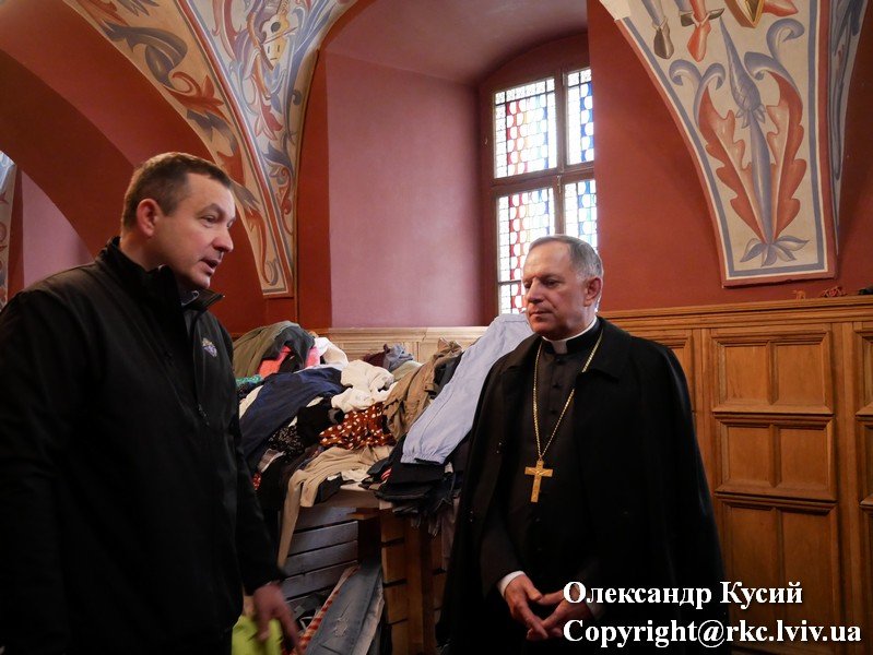 «Дякуємо архієпископу, що він відгукнувся на наш запит і надав ці приміщення під створення Центру допомоги. З перших днів війни ми отримували в рамках гуманітарної допомоги багато одягу і спершу докладали його до продовольчих вантажів на Схід. Проте швидко зрозуміли, що він більше потрібен тут у Львові, куди прибуває велика кількість вимушених переселенців. Багато людей опинилося в чужому місці з одним пакетом в руках. Тому ми подумали, що варто створити таке місце, де можна знайти необхідні речі – одяг та взуття, підгузки та іграшки. Тож ми щиро дякуємо нашому Митрополиту за благословення, а нашим дружинам за підтримку цієї ініціативи і за те, що погодилися заопікуватися цим місцем і людьми, які будуть сюди приходити».