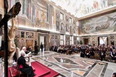 Святіший Отець сказав, що якщо в земному житті людина обирає життя (пор. Втор 30,19), то Діва Марія, Яка була взята на небо, дана людині як знак того, що у воскреслому Христі всі ми можемо поглинути смерть (пор. 1 Кор 15, 54). «Звичайно, це Боже діло, а не наше. Однак Марія є тим поєднанням благодаті та свободи, яке спрямовує кожного з нас до довіри, відваги, залучення в життя народу», – зазначив він.