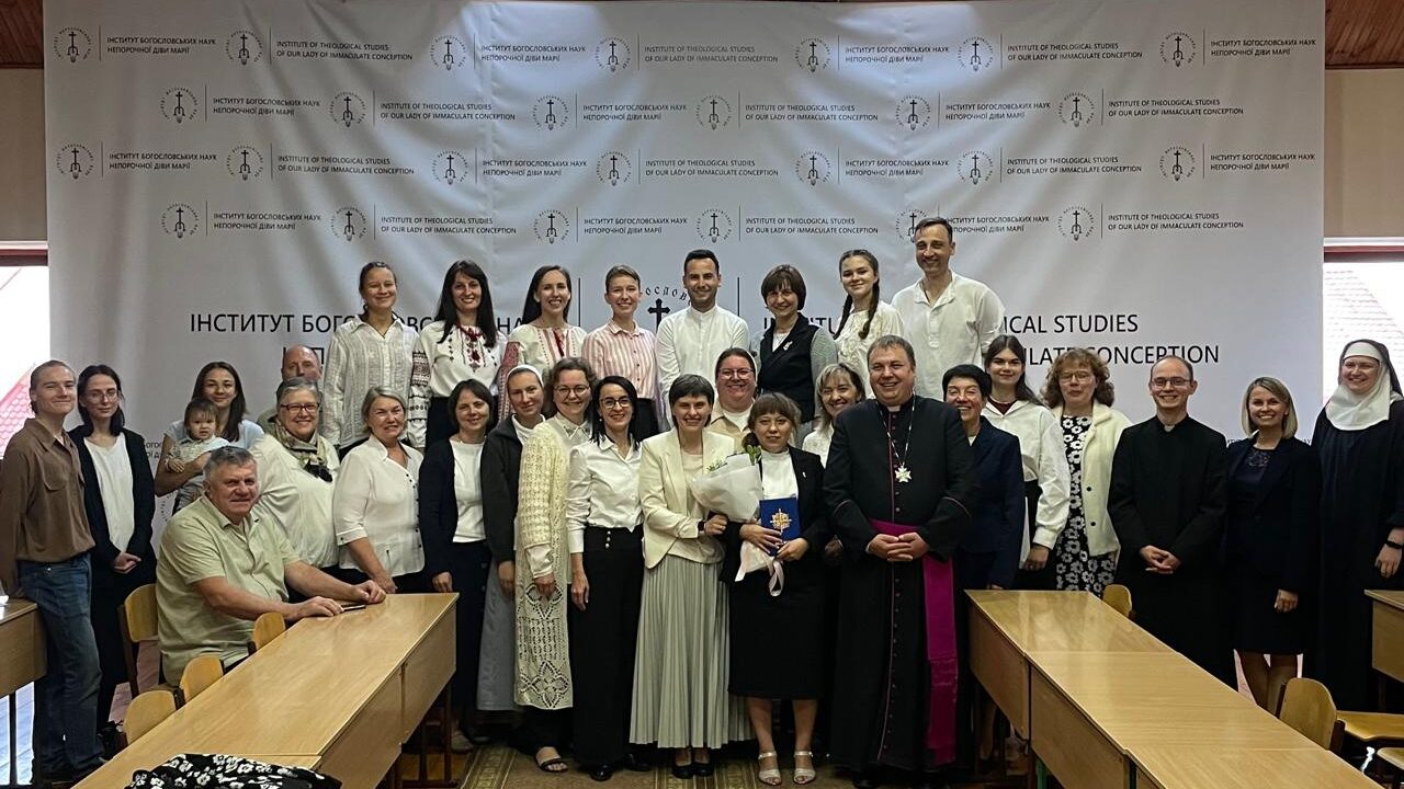 24 вересня відбулося вручення диплому студентці четвертого курсу с. Корнелії Іконніковій SCM. Захід розпочався святковим співом студентів, який створив молитовну та урочисту атмосферу. З вітальним словом до присутніх звернувся ректор Інституту богословських наук Непорочної Діви Марії о. Олег Жарук. Викладачка сольфеджіо Катерина Перекліта та директор Школи с. Людмила Рихальська SCM, привітали випускницю та подякували за старанне навчання, активну участь у житті школи та відданість музиці. Завершила урочистість Свята Меса, під час якої лунали співи студентів і викладачів, що стали вдячною молитвою за дар музики та служіння Церкві.