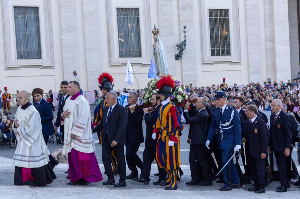 «Навчи нас разом з Тобою стояти біля нескінченних хрестів, де досі розпинають Твого Сина, де життя перебуває під найбільшою загрозою; жити і свідчити християнську любов, приймаючи в кожній людині брата чи сестру; відмовитися від сліпого егоїзму, щоб слідувати за Христом, справжнім світлом людини. Діво миру, двері певної надії, прийми молитву своїх дітей!» – такою молитвою Папа Лев XIV завершив свої роздуми після проказування молитви Розарію в намірі миру в світі, яку він у суботу, 11 жовтня 2025 р., очолив на площі Святого Петра у Ватикані з нагоди Ювілею Марійської духовності, а також у контексті відзначення чергової річниці початку Другого Ватиканського Собору. Перед початком молитви на вервиці Святіший Отець поставив до стіп статуї Пресвятої Богородиці з Фатіми, винятково привезеної до Ватикану із санктуарію в Португалії, золоту троянду як дар для Святині. Чування завершилося Євхаристійною адорацією та благословенням.
