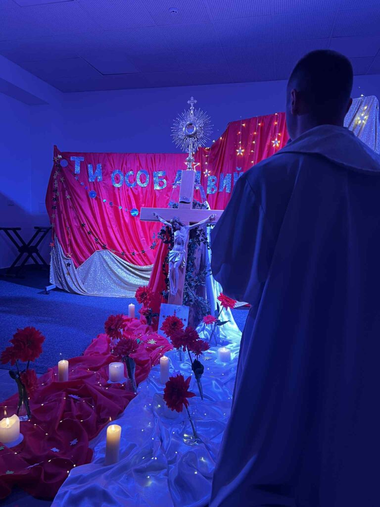 Особливо зворушливою стала адорація Пресвятих Дарів і Хреста, яку провадив о. Євген Фізер. У напівтемряві, при світлі свічок, учасники приносили до Хреста свої болі, образи й рани, довіряючи їх Тому, Хто любить безумовно. У цей момент кожен міг по-справжньому відчути: любов Бога сильніша за будь-яку людську оцінку.