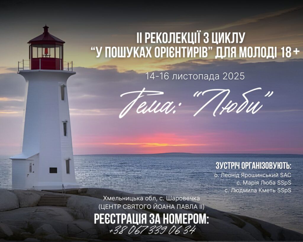 У середині листопада у Центрі св. Йоана Павла ІІ в Шаровечці відбудуться реколекції для молоді (18+). Це є другі реколекції з циклу «У пошуках орієнтирів». Цього разу тема духовної віднови присвячена любові.