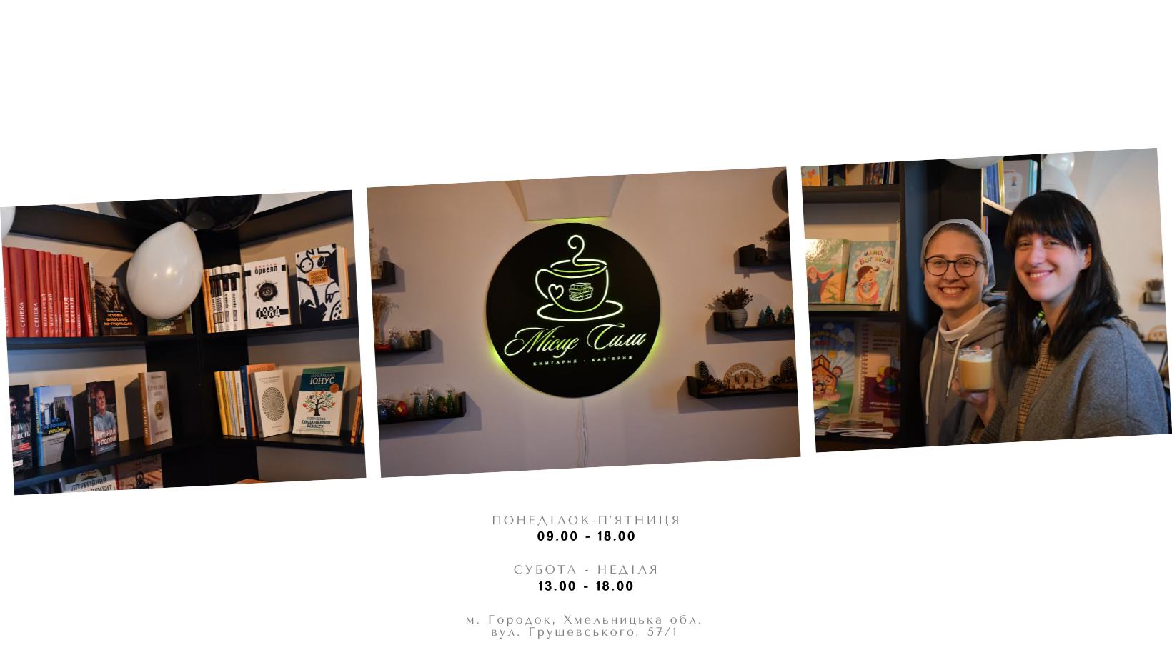 Сердечно запрошую, завдяки зручному графіку, «Місце Сили» є доступним для усіх мешканців і гостей Городка, які шукають натхнення та якісного дозвілля. Ми працюємо за адресою вул. Грушевського 57/1 згідно з наступним графіком:
