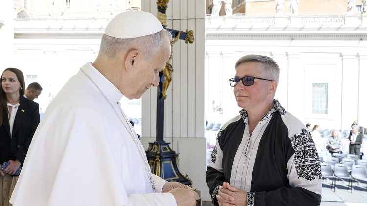 «Мене звати Людмила. Я дружина і мама воїнів: чоловік воював, а син продовжує воювати. Війна для нас теж почалася в 2014 році, тому що ми на той момент проживали і малий бізнес в Криму, і вже тоді довелося стикнутися з російською армією та з окупацією Криму. Ми змушені були поїхати звідти, і влаштувалися Києві: знайшли там для себе працю і заняття. У 2022 році, з першого дня повномасштабного вторгнення, мій син пішов воювати добровольцем. Чоловік у березні 2022 року мобілізувався і теж пішов на війну. Пропри те, що йому було 59 років, він не зміг залишитися осторонь. На даний момент чоловік вже ветеран, він мав контузії, і вже й по віку демобілізувався. А син впродовж всього цього часу продовжує захищати Україну. Про що я хочу розповісти? В березні 2022 року ми опинилися в Сваляві на Закарпатті, бо так сталося, що знайомі запропонували туди приїхати. Ми ж не знали, що це затягнеться настільки, і було дуже важко, бо я була там сама і моя собачка зі мною: і син, і чоловік були на фронтах. І я шукала для себе якусь підтримку. Ну і на те, напевно, воля Божа, щоб ідучи повз нашого свалявського римо-католицького храму Успіння Пресвятої Богородиці, я побачила, що двері були відкриті. Я туди зайшла і залишилася. Я навіть не уявляла, що через деякий час це приведе мене в Рим до зустрічі з Папою Римським. Я молилася за своїх. Дуже мене вразило, коли священник отець Томаш запропонував мені прийти на молитву. “Кожного вечора ми молимося за наших воїнів і за мир в Україні”, – сказав він. І мені завжди дуже зворушувало, коли всі в церкві на службі молилися і звучали такі слова: “За Володимира і сина його Станіслава”. Це давало мені надію і сили, що молитви не тільки мої, а стількох людей допоможуть їм. І вони допомогли. Я це точно знаю. На даний час, дякувати Богу, вони живі, здорові. Ще на одному я би хотіла наголосити… В храмі я познайомилася з психологом Олесею Уліганець з благодійної організації “Дерево мого життя”, яка прийшла до нас на одну із зустрічей. Вона розповіла про організацію і запропонувала прийти. І відчула, що я вкотре отримала допомогу з небес. Так я опинилася в організації “Дерево мого життя”, і за це я дякую Богу, звичайно, тому що це стало для мене дуже вагомою опорою. Бо це дуже непросто витримувати, коли такі психологічні навантаження, стреси, постійні хвилювання. А в “Дереві мого життя” є і фахівці, і психологи, та інші жінки. Там ти відчуваєш себе серед своїх, серед людей, які тебе дійсно розуміють, які переживають схожі з тобою емоції і відчуття. І тоді ти вже трошки відчуваєш себе, що ти не одна на цій землі і в такій ситуації. Це дає віру і надію, що все буде добре. У свялявському осідку нашої організації найбільше розвинутий саме аспект психологічної підтримки, і це було саме те, чого мені не вистачало. Можливо, це були якісь невирішені питання моєї особистості. З кожного заняття я виносила те, що мені було потрібно. Наприклад, мене вразило одне із занять, на якому говорилося про жінок нашого роду. І навіть коли я сюди їхала, я згадувала свою маму, бабусю, яка, до речі, теж постраждала від того, що була репресована і заслана із західної Білорусі в Сибір. Це так перекликається… Я хочу вам сказати, що мій чоловік він теж не українець: він етнічний поляк, але народився в західній Білорусі. Його сестри зараз живуть в Литві. І я хочу наголосити, що ця війна стосуєтьс