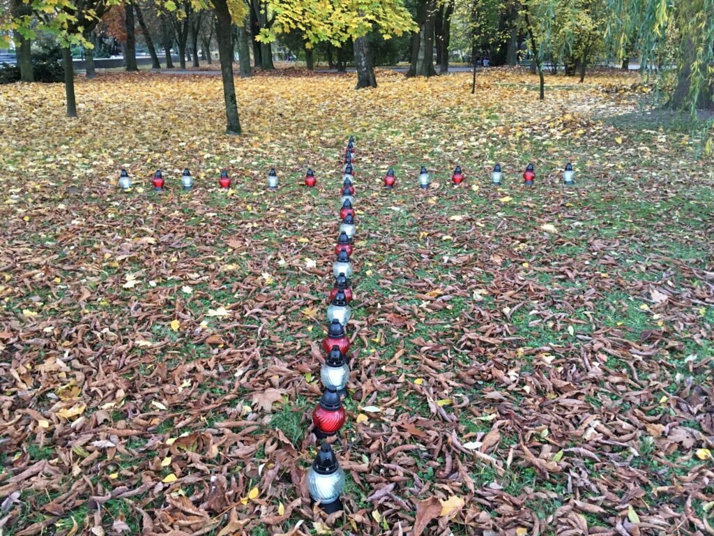Учасники запалили лампадки, виклавши ними символічний хрест на місці зруйнованого католицького кладовища, де колись спочивали понад 15 тисяч католиків.