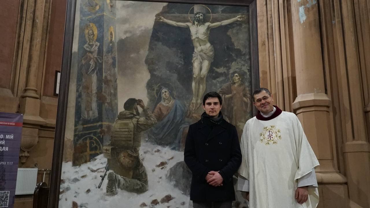 «Ця картина для нас – не просто мистецтво. Це молитва серця, це Україна, яка стоїть на колінах перед Богом, але не падає. Держава сьогодні боронить себе зі зброєю в руках, а ми боремося за нашу святиню – за право молитися у власному храмі», – зазначив настоятель парафії святого Миколая, доктор теології отець Павло Вишковський OMI.