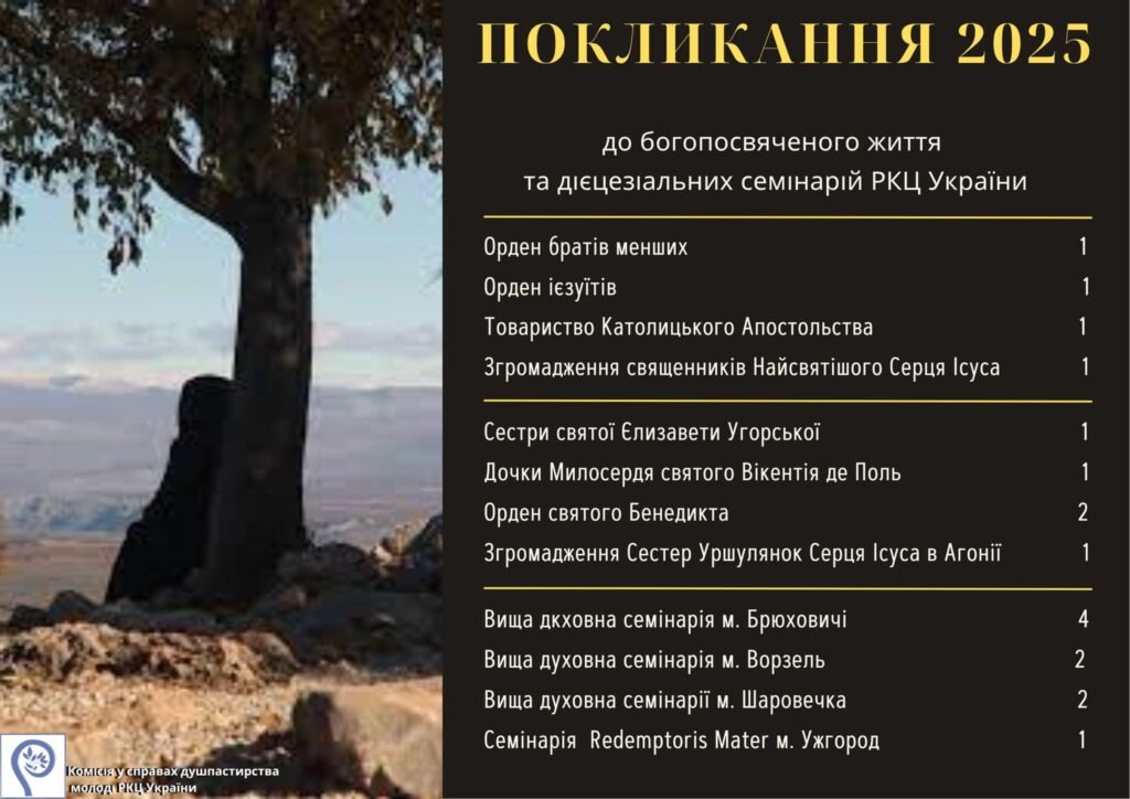 Комісія у справах душпастирства молоді Римсько-Католицької Церкви в Україні у листопаді 2025 року провела щорічне опитування «Покликання до богопосвяченого життя та дієцезіальних семінарій в Україні».