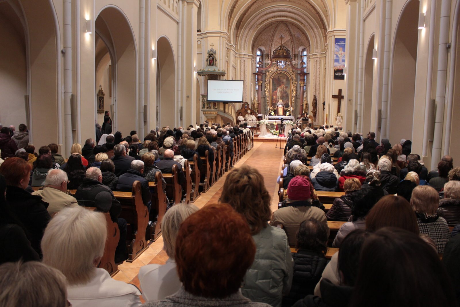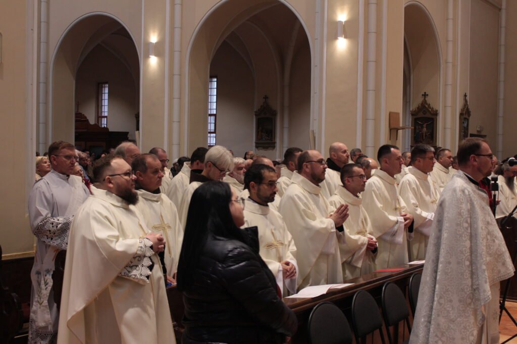 Процесія духовенства урочисто увійшла до храму під звучання гімну Святого Ювілейного 2025 року у виконанні мукачівських парафіяльних україномовного та угорськомовного хорів.