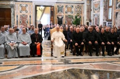 «Дорогі друзі, святість повинна квітнути саме там, де приймають рішення, що впливають на життя тисяч сімей. Світ нагально потребує підприємців і керівників, які з любові до Бога і ближнього працюють на розвиток економіки, що служить спільному благу, – зазначає Святіший Отець. – Нехай ця промислова конференція стане місцем для відновлення зусиль на користь інноваційної, конкурентоспроможної і, передусім, гуманної промисловості, здатної підтримувати розвиток наших народів, не залишаючи нікого осторонь».