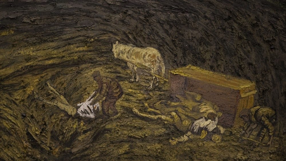 «Покаяння і надія. Свідчення Петра Геодезиста про голод» – таку назву має виставка картин українсько-болгарської художниці Йони Тукусер, яка експонується в церкві Святого Ігнатія Лойоли в Римі. Відкриття виставки відбулося 18 жовтня 2025 р., а триватиме вона до 10 січня 2026 року. Як пояснила художниця в інтерв’ю для Радіо Ватикану – Vatican News, ці картини відображають голод 1946-1947 років, який охопив чимало регіонів України, а зокрема Бессарабію, де народилася авторка. Центральною особою виставки є Петро, який зображений на одній з картин. «Я його зустріла в 2018 році, коли робила експедицію, збираючи спогади старших людей, які пережили це жахіття, – розповіла вона. – На картині я його показала так, як він сидів переді мною, коли ми розмовляли. В руках він тримає замок, і коли він зі мною розмовляв, то він його відкривав і закривав, немовби відкривав своє серце, яке було закрите дуже довго».