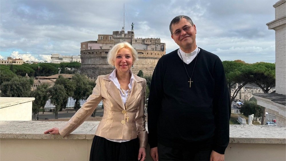 «Ми давно мріяли про паломництво з нагоди Ювілейного року, ще на початку травня, і нарешті нам вдалося його здійснити, ми прибули з групою 50 осіб. Під час організації паломництва пані Наталя, яка співає в парафіяльному хорі, розповіла про молодого талановитого художника Івана Волошина, який пів року писав картину “Молитва”, яку забажав подарувати Папі Леву XIV», – розповів у інтерв’ю для Радіо Ватикану-Vatican News о. Павло Вишковський, OMI, настоятель парафії святого Миколая в Києві. Описуючи картину, священник зазначає, що вона представляє Україну, понівечену війною, зруйновані обстрілами храми. «І наш костел святого Миколая, наша парафія, постраждала від російської атаки, і досі страждає, тому що храм не повернутий. Про це ми також говорили з Папою Левом», – сказав душпастир.