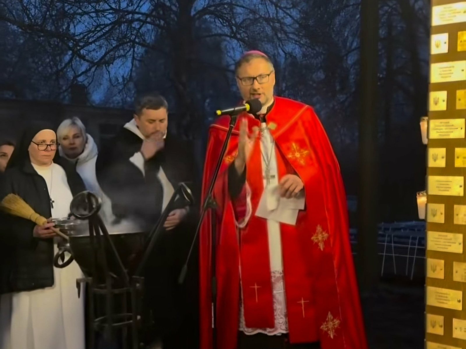 21 листопада у Фастові Апостольський нунцій в Україні Вісвальдас Кульбокас освятив меморіал пам’яті загиблим Захисникам.
