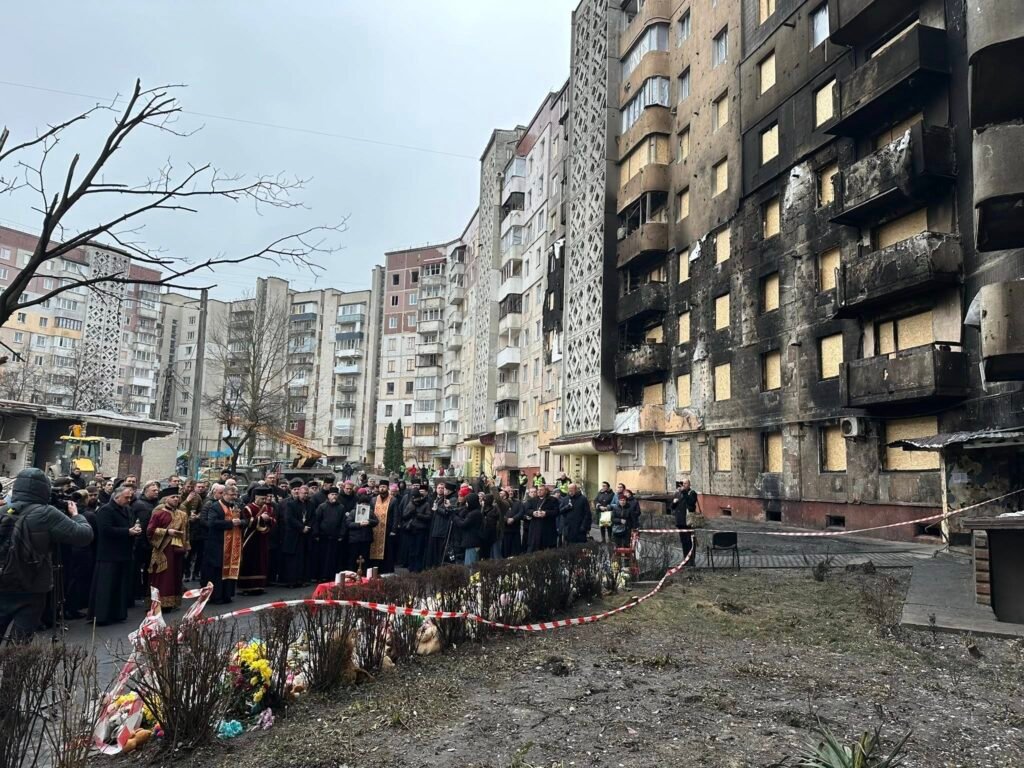 Молебень та зустріч з містянами відбулась поруч із місцем трагедії. Зруйновані будинки забрали життя понад трьох десятків людей, серед яких – шестеро дітей; майже сотня осіб отримала поранення.