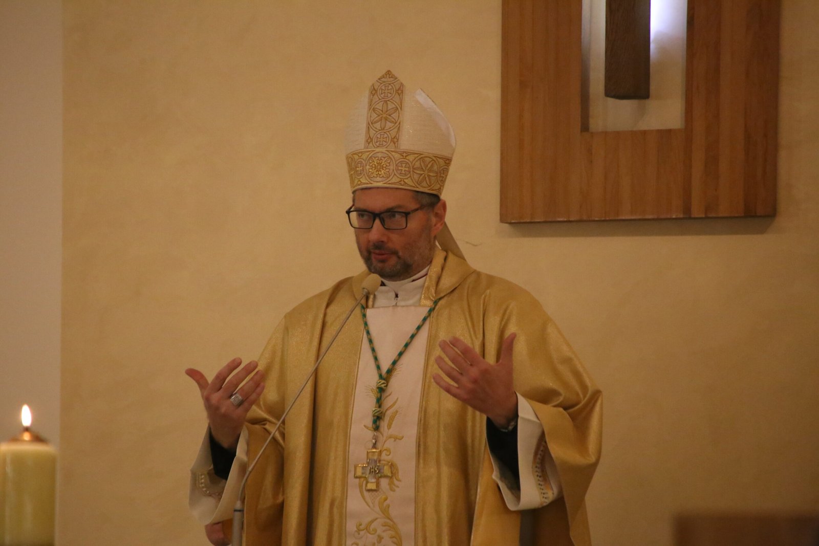 У проповіді архієпископ Вісвальдас роздумував над словами з Євангелія, зверненими до людей – сучасників Ісуса Христа. Він говорив про руйнування храму, яке буде знаком того, що Царство Боже близько. Розмірковуючи над словами Христа про те, що Царство Боже приходить через руйнування, архієпископ наголосив, що це не означає, ніби кожна війна є знаком наближення Царства. Адже Царство Боже – це те, що належить Богові. Деякі Отці Церкви розрізняли царство земне та Царство Боже, де все підпорядковане Господу.