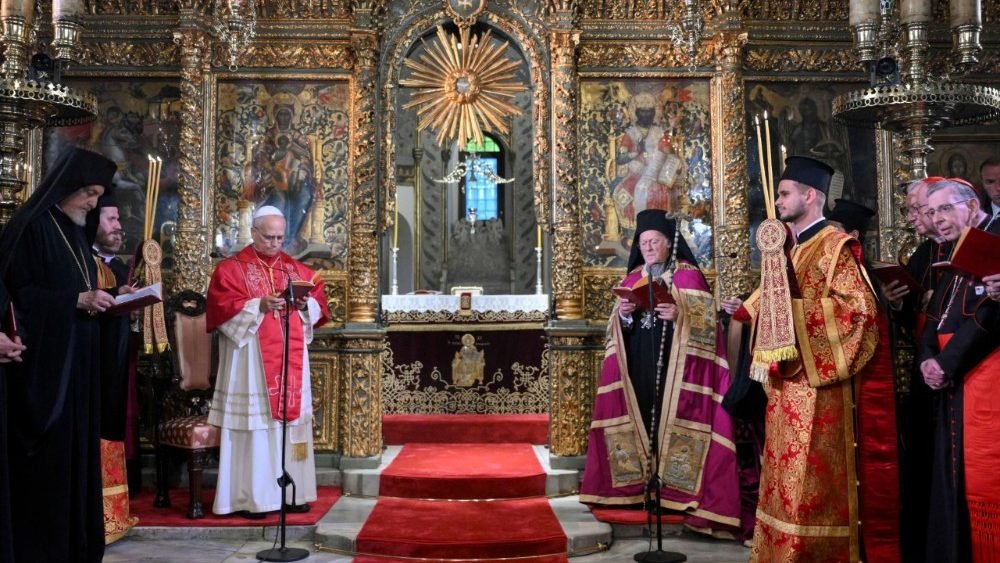 Під час третього дня Апостольської подорожі Папа Лев XIV спільно з патріархом Варфоломієм І помолилися молитву славослов’я в патріаршому соборі святого Юрія в Стамбулі.