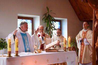 Урочисту Літургію очолив єпископ-помічник Київсько-Житомирської дієцезії Олександр Язловецький. Співслужили з ним хранитель санктуарію отець Віталій Козак OCD та священники з навколишніх парафій. Знаковою подією стала присутність отця Романа Назара, представника Української Греко-Католицької Церкви, що підкреслило єдність у молитві.