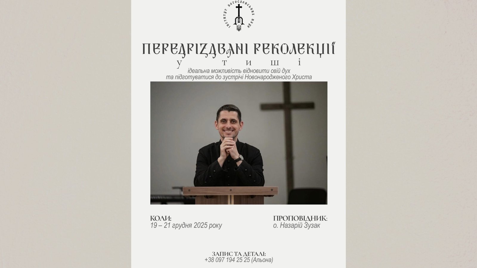 Передріздвяні реколекції відбудуться у Городку на Хмельниччині в Інституті Богословських Наук Непорочної Діви Марії.