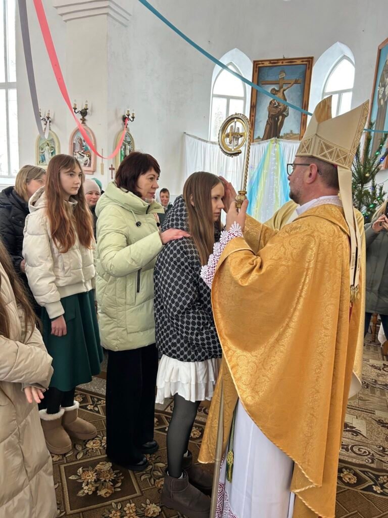 Під час урочистості єпископ Едуард уділив Миропомазання, закликаючи Святого Духа зійти на кожного з кандидатів і зміцнити їх у вірі, надії та любові. На пам’ять про прийняте таїнство ординарій Кам’янець-Подільської дієцезії подарував миропомазаним хрест — як знак спасіння, духовний дороговказ на життєвій дорозі та нагадування про покликання бути свідками Христа у світі.