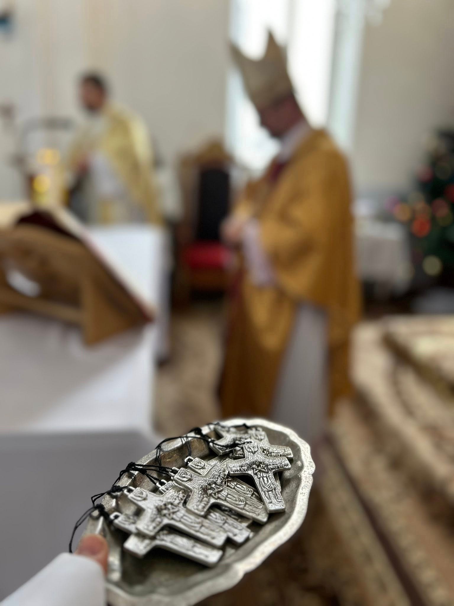 Нехай цей хрест супроводжує їх у щоденному житті, а отриманий у цей день дар Святого Духа допомагає сміливо свідчити про Божу любов, де б вони не перебували, і зростати в християнській зрілості та вірності Церкві.
