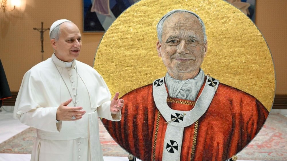Ватиканська майстерня мозаїки при Фабриці святого Петра, трохи більше ніж через вісім місяців після обрання Святішого Отця Лева XIV, завершила роботу над портретом, призначеним для базиліки Святого Павла за мурами. Замовником був Архіпресвітер цієї базиліки кардинал Джеймс Майкл Гарві.