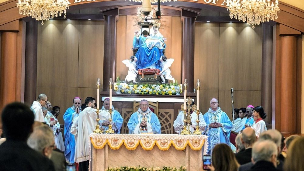 З моменту спорудження цієї першої католицької церкви в Кувейті та в Перській затоці «незліченні християни знайшли в Марії захист». І вчора, як і сьогодні, думки линуть до «багатьох людей у всьому світі, які змушені шукати безпечного притулку» через «війни, бідність, стихійні лиха чи інші труднощі». Так про важливість храму Богоматері Аравійської в місцевості Ахмаді говорив кардинал П’єтро Паролін, очолюючи в п’ятницю, 16 січня 2026 року, церемонію возведення його в статус малої базиліки.