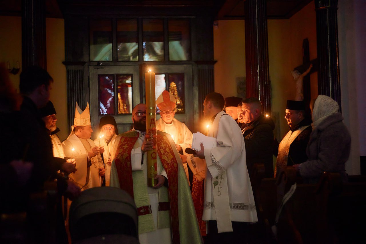 Правлячий єпископ Кам’янець-Подільської єпархії УГКЦ Іван Кулик провів обряд відновлення обітниць хрещення, завдяки яким ми колись зреклися сатани та його справ і присягнули служити Богові, щоб через пасхальну тайну бути похованими разом із Христом та разом із Ним увійти в нове життя.