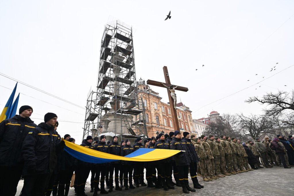 Сьогодні, 22 січня, у Львові відбулися заходи з нагоди Дня Соборності України та 108-ї річниці проголошення незалежності Української Народної Республіки. Урочистості пройшли на площі Соборній біля храму святого Андрія.