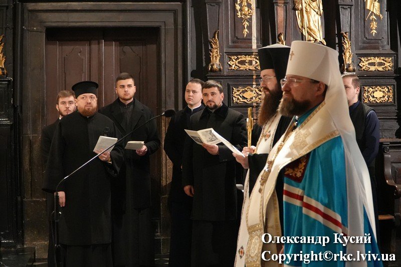 На початку спільної молитви, о 17:30, молебень за єдність християн та Україну очолив митрополит Львівський і Сокальський ПЦУ Димитрій (Рудюк) разом із деканом богословського факультету Львівської православної богословської академії, ієромонахом Кіпріаном (Лозинським), та делегацією від ПЦУ.