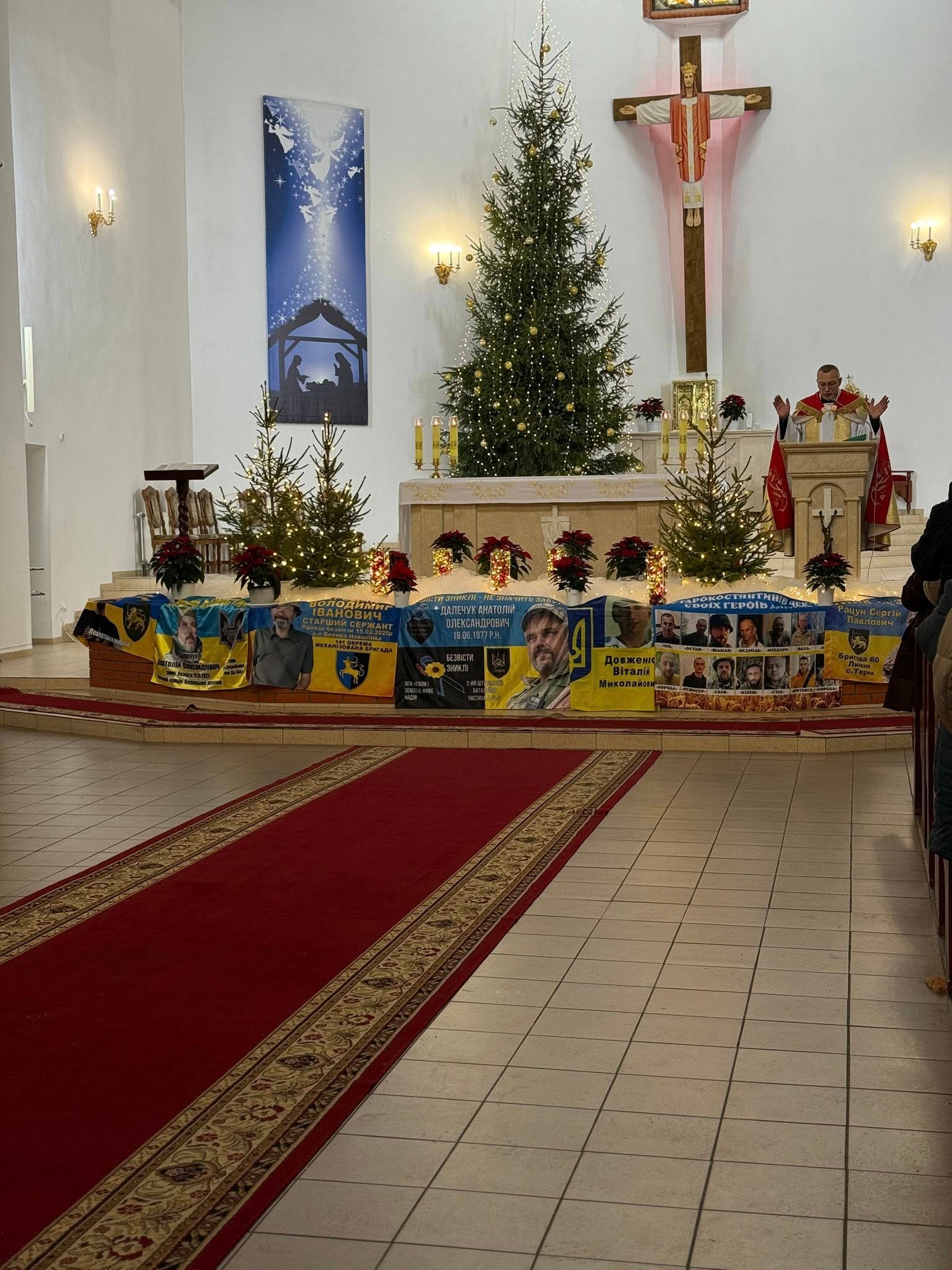 У вступному слові отець Микола заохотив до усвідомлення того, перед Ким ми стоїмо. Під час молебню рідні розгорнули прапори з фотографіями полонених та зниклих безвісти, за яких цього дня особливим чином молилися, було поіменно зачитано їхні імена. Далі відбулася Літургія Слова, після якої отець Микола виголосив проповідь. На завершення священник уділив зібраним благословення. Продовження зустрічі стало колядування біля вертепу.