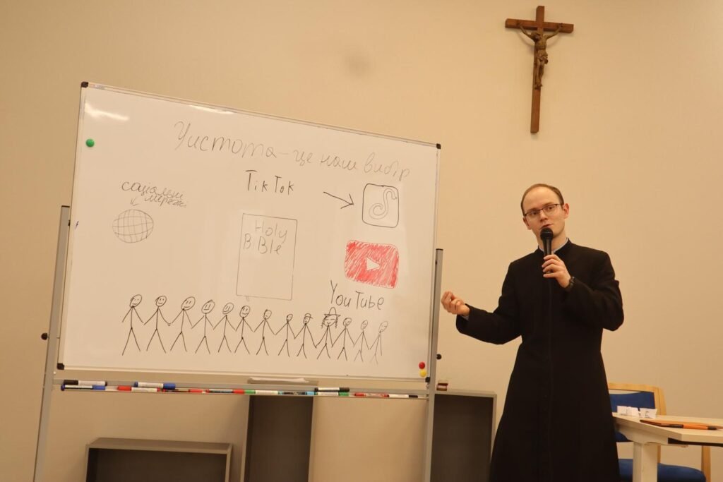 Організатор реколекцій о. Микола Бистрицький у заключній конференції звернув увагу молоді на теми свободи, меж та відповідальності.