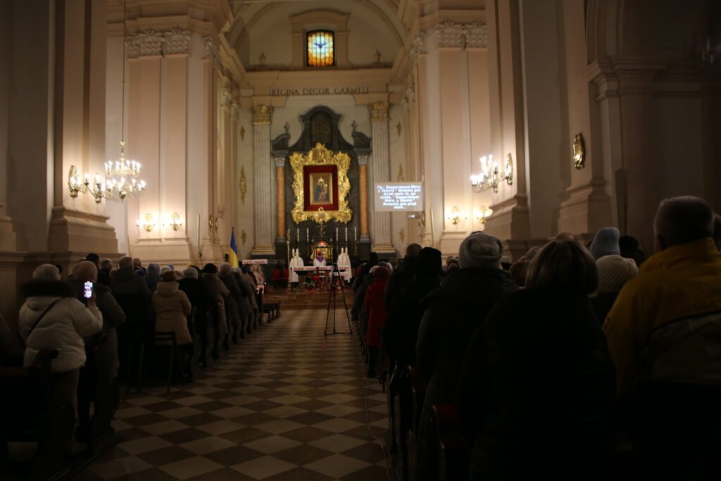 24 лютого, єднаючись із цілим світом, у Всеукраїнському санктуарії Матері Божої Святого Скапулярію відбулася молитва до четвертих роковин повномасштабного вторгнення. Молебень та Святу Месу очолив ординарій Київсько-Житомирської дієцезії єпископ Віталій Кривицький.