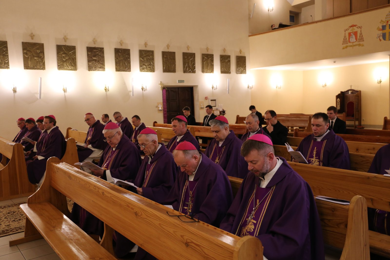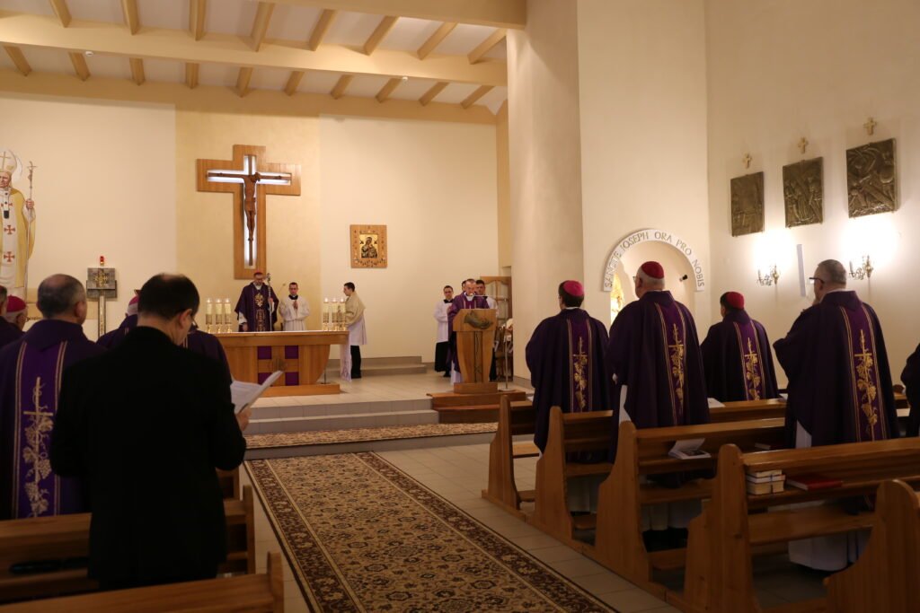 Засідання розпочалося ввечері молитвою Літургії Годин, після якої відбулася братня зустріч єпископів та гостей. А вже вранці ієрархи з усієї України зібралися на Святу Месу, яку очолив Апостольський нунцій в Україні архієпископ Вісвальдас Кульбокас.