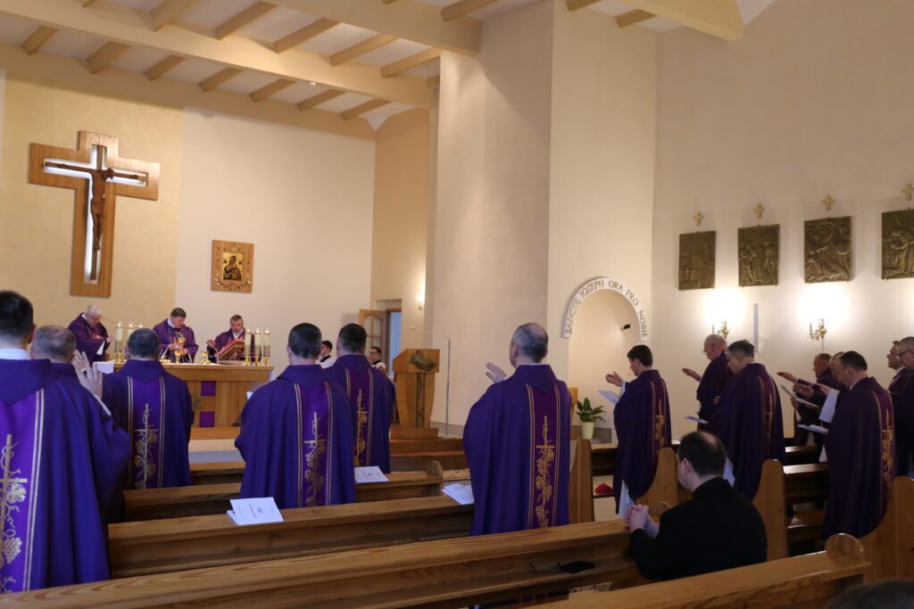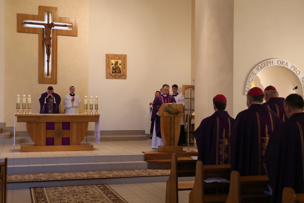 Другий день засідання єпископату розпочався зі Святої Меси, яку очолив голова Конференції Єпископату, ординарій Луцької дієцезії єпископ Віталій Скомаровський.