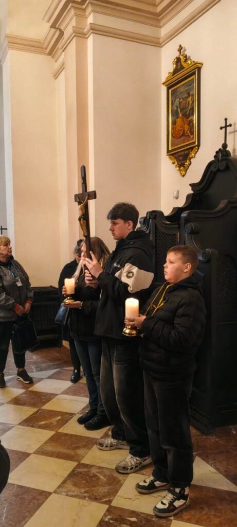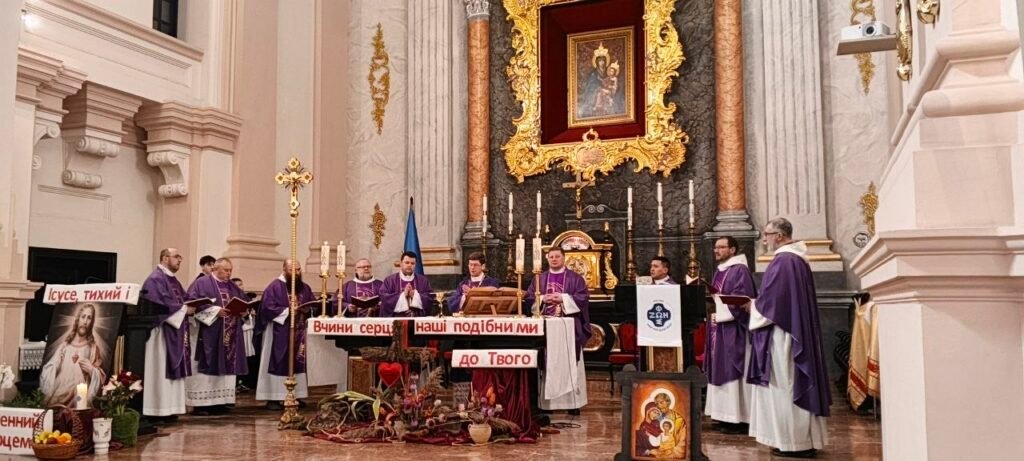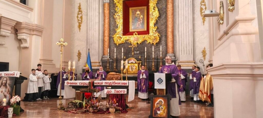 Євхаристію звершував ординарій Київсько-Житомирської дієцезії єпископ Віталій Кривицький SDB, який завжди радо приймає запрошення і як добрий пастир готовий послужити нашій спільноті. Дякуємо єпископу за проголошену повчальну проповідь про віру і довіру до Бога, працю над собою, важливість бачення себе в правді, примирення з Богом і ближнім, а також про спокуси осуду, оцінювання, непрощення. Євхаристія звершувалась в намірах за нашу спільноту, за військових і ветеранів та за загиблих воїнів нашої спільноти.