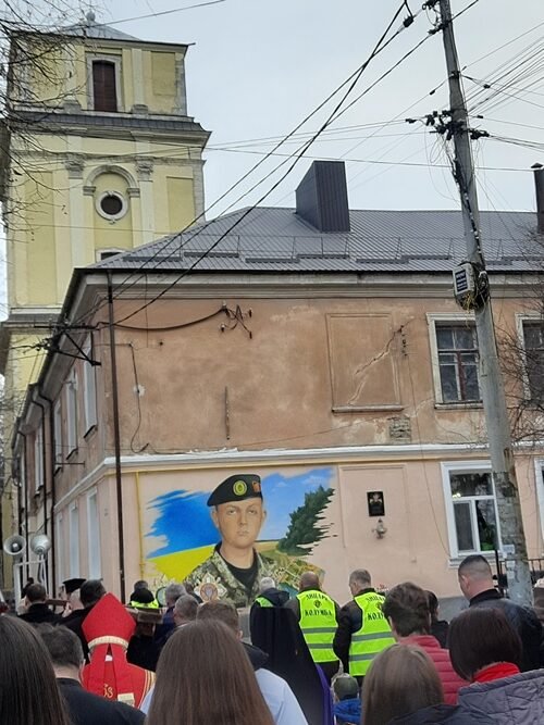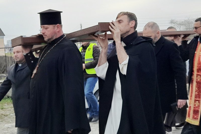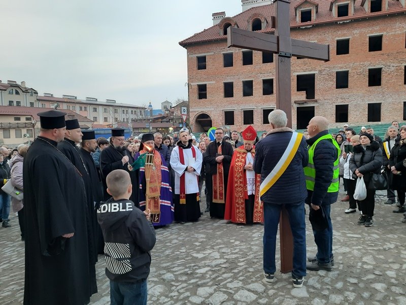 Хрест, принесений із римсько-католицької катедри святих апостолів Петра і Павла, почергово несли представники різних парафіяльних спільнот, а також воїни, ветерани й члени родин захисників України.