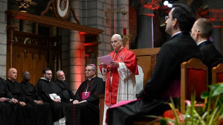 Зустріч розпочалась словами привітання архієпископа Монако Домініка-Марі Давіда. У своїй промові він зазначив, що катедральний собор Непорочного Зачаття, попри те, що є кам’яною спорудою становить серце архідієцезії. «Скеля, на якій зведений храм нагадує, що саме Христос є нашою справжньою Скелею, фундаментом і наріжним каменем Свого Тіла, яким є Церква», – підкреслив архієпископ. Після спільної молитви Літургії Годин, Папа Лев звернувся до зібраних з пастирським словом.