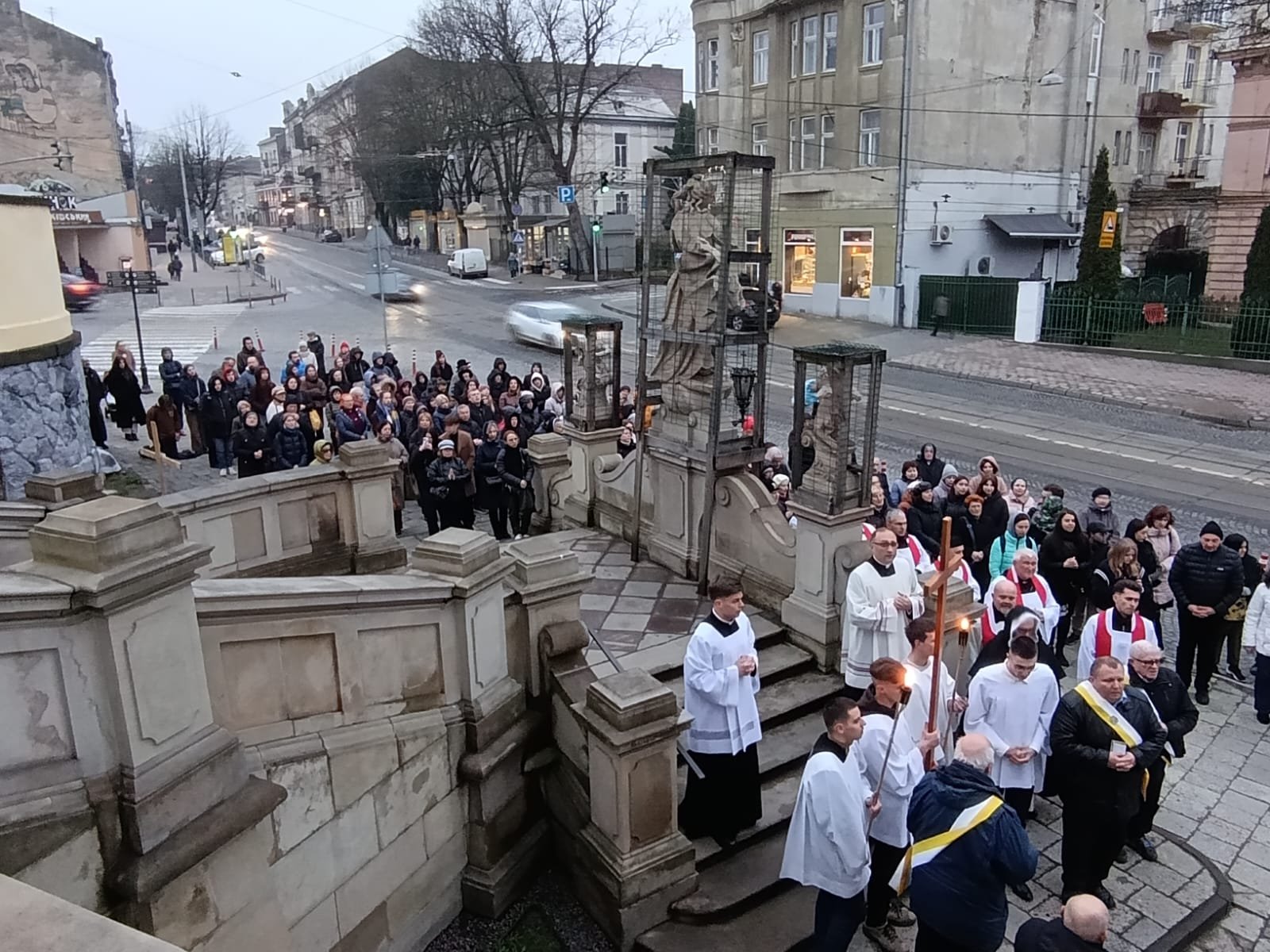 1 квітня 2026 р., у середу Великого Тижня, напередодні Святого Пасхального Тридення, католики Львова зібралися в Санктуарії св. Антонія Падуанського, щоб разом молитися на Євхаристії та Хресній дорозі за перемогу України, справедливий мир і захист для наших воїнів.