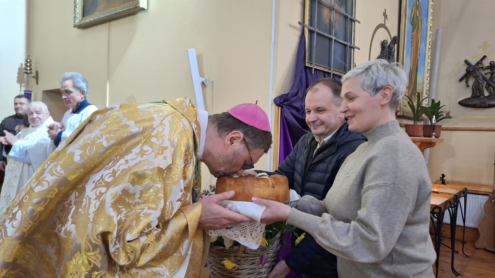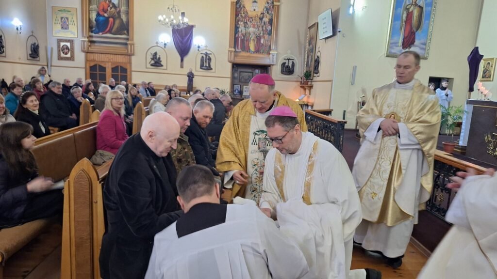 На початку Святої Меси єпископ-помічник Ян Собіло звернувся до присутніх із теплим і водночас глибоким словом: «Розпочинаємо святе Пасхальне Тридення — дні нашого спасіння. Це час, коли небо особливо торкається землі, коли Бог наближається до людини у своїй любові.