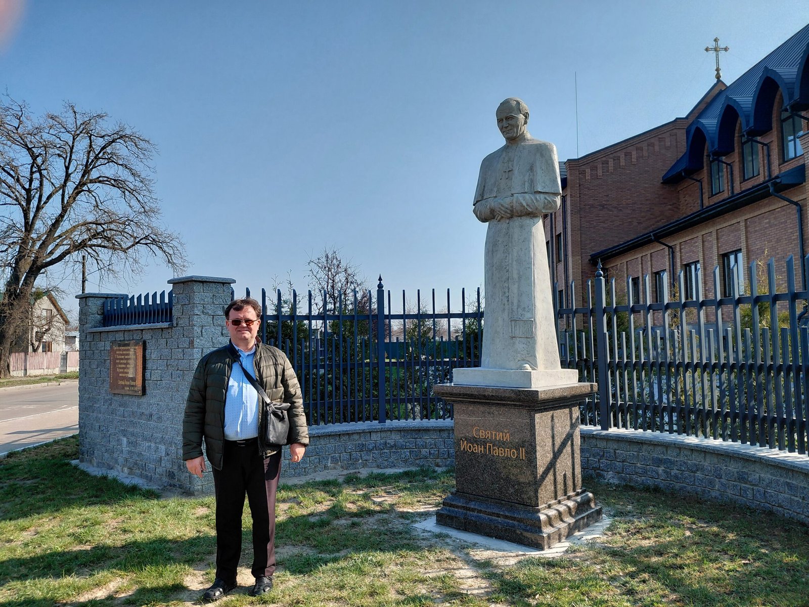 «Це авторська робота митця. Він саме так побачив Папу Римського і не копіював жодного з уже встановлених пам’ятників. Йоан Павло ІІ зображений без традиційного одягу та білої шапочки (пілеолуса), яку понтифік часто носив як знак свого сану. У баченні Богдана Гречака Папа постає без зовнішніх атрибутів — скромний, лагідний, добрий і відкритий. Саме таким він був за життя. Його голова трохи нахилена вперед, а руки схрещені внизу — цим художник підкреслив його смиренність, попри високий релігійний сан», — зазначив настоятель.