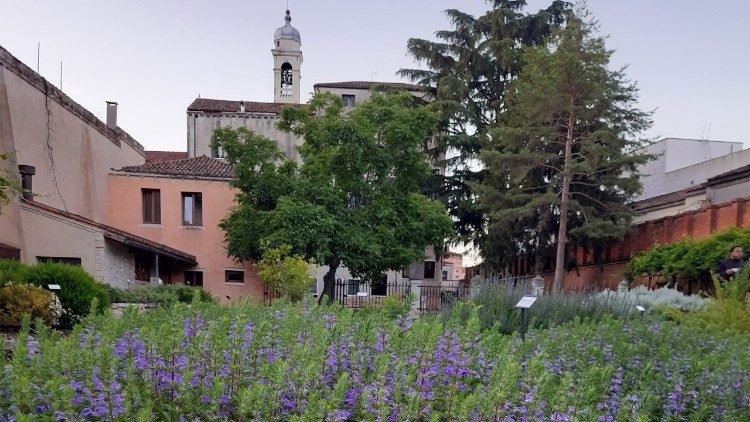 Павільйон Святого Престолу, що має назву «Вухо – це око душі, набуває форми музичної молитви – запрошення до споглядального слухання, натхненного життям і спадщиною святої Гільдеґарди Бінгенської (1098–1179), середньовічної черниці, поетеси та композиторки. Перша частина павільйону, представлена в старовинному «Містичному саду» у Венеції, розташованому на території монастиря XVII століття, яким опікується спільнота босих кармелітів, – демонструє нові музичні твори 20 сучасних композиторів, музикантів та поетів, які перегукуються з піснями, творами та баченням святої Гільдеґарди. Відвідувачів павільйону запрошують зануритися – за допомогою навушників – у досвід споглядального прослуховування цих творів, складених групою «Soundwalk Collective», яка створила спеціальний звуковий інструмент, що записує звуки в саді, перетворюючи тонкі природні звуки – біоелектричну активність рослин та мікроакустику вітру, води, дерева, комах і ґрунту – на композицію, що постійно еволюціонує.