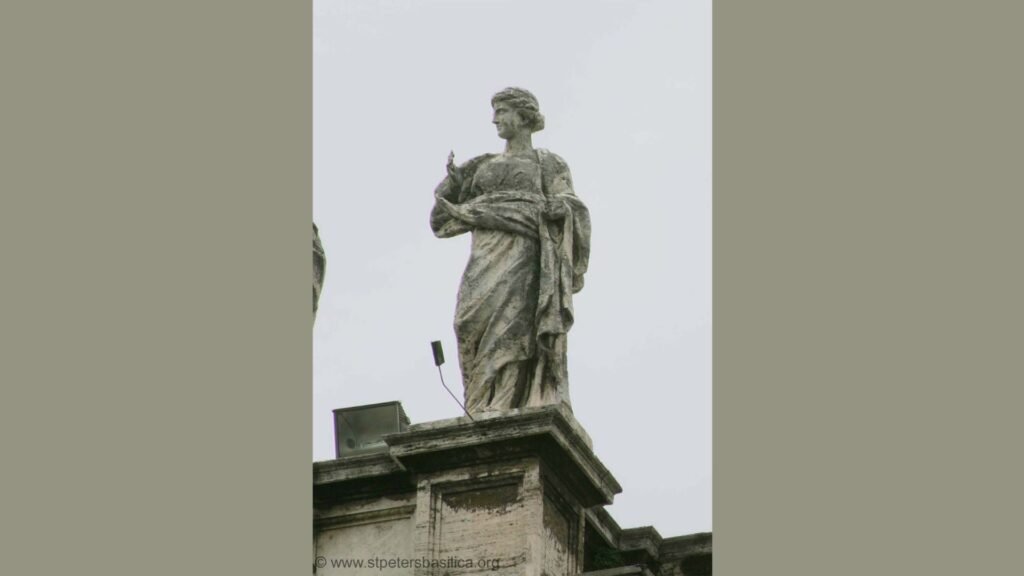 Фігура святої розміщена у південній частині колонади святих на площі св. Петра.