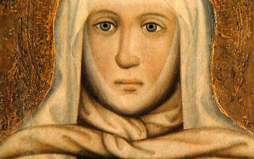 Зображають святу в князівському вбранні, інколи під час мучеництва. Атрибути – хрест, хустина.