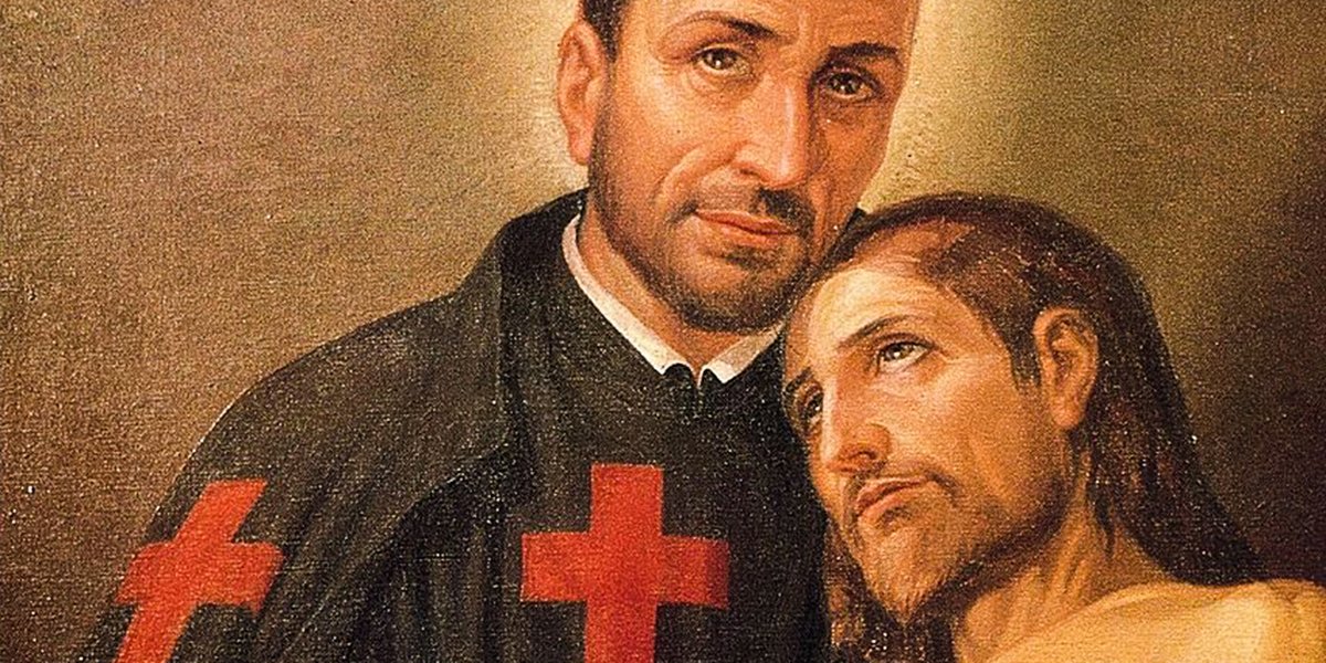 Зображають святого в сутані з великим червоним хрестом на грудях, часто серед хворих. Атрибути – хрест, ангел, Богородиця.